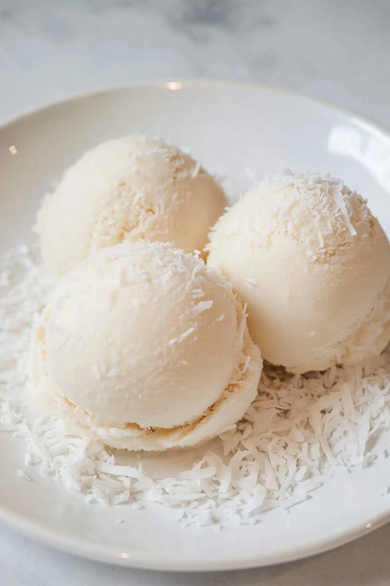 - Optional: Create a tunnel in the sorbet, add shredded coconut, and use the mix-in function to incorporate.